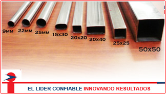 Tubos de acero inoxidable en diferentes medidas: 9mm.,22mm.,25mm. 15x30, 20x20, 20x40, 25x25, 50x50 |